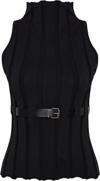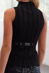 Stil Modern Kadın Regular Standart Kol Dik Yaka Kemerli Triko Süveter