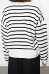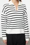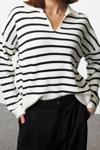 Stil Modern Kadın Regular Standart Kol Polo Yaka Geniş Kalıp Çizgili Triko Kazak