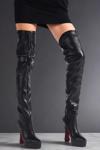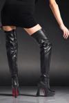 FRM Stil Modern Kadın Sivri Burun Platform Diz Üstü Streç Çizme Özel Tasarım Gündüz Gece Abiye Ayakkabı