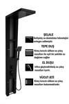 Flow Yapı Stilo Siyah Premium Şelaleli Raflı Masajlı Duş Paneli - Dikey Jakuzi - Robot Duş - El Duşu - Lüx Duş