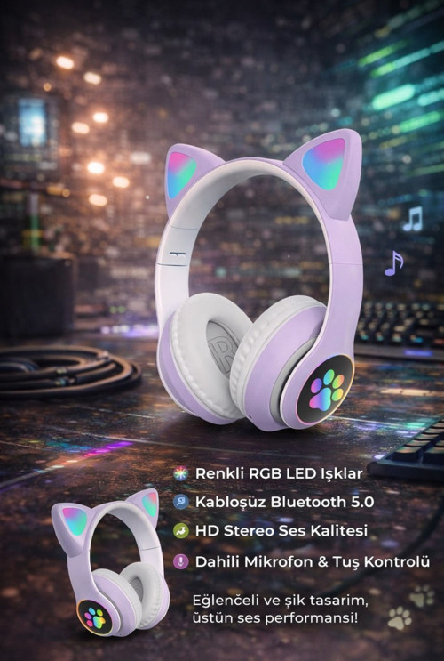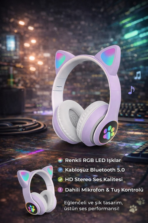 Tarzınızı müzikle buluşturun! RGB ışıklı tasarımı ve kedi kulak detaylarıyla öne çıkan bu kablosuz kulak üstü kulaklık, hem güçlü ses performansı hem de dikkat çekici görünümü bir arada sunar. Günlük kullanım, oyun, online ders ve telefon görüşmeleri için ideal bir çözümdür.