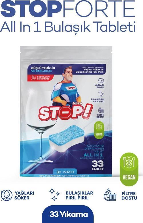 Stop Forte Bulaşık Makinesi Tableti Doğal & Vegan Bulaşık Makinesi Deterjanı Güçlü Temizlik - 33 Yıkama