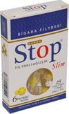 Stop Slim Filtreli Ağızlık, yeni 6'lı filtre sistemi ile nikotin ve katranı yüksek oranda süzerek, mükemmel bir içim keyfi sağlar. Ağızlık haznesi dolduğunda(2-4 sigara) yenisi ile değiştiriniz. Her pakette 25 Adet Stop Slim Filtreli Ağızlık + 5 Aparat bulunmaktadır. Toplam 24 Paket. 5 ve 6mm kalınlığındaki sigaralar için uygundur. 6mm kalınlığındaki sigaraları direkt filtreli ağızlığa takarak, 5 mm. kalınlığındaki sigaraları aparat yardımıyla kullanabilirsiniz.