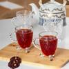 15720 Ayaklı Kulplu Desenli 4’lü Cam Bardak – Kulplu Çay Kahve Bardağı – 200 cc