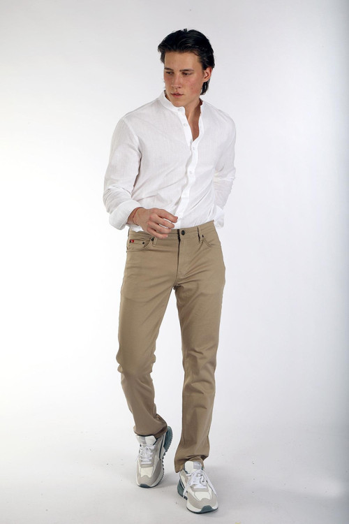 Stow Normal Bel Dar Kesim Düz Paça Bej Erkek Pantolon
