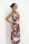 Explosion Kadın Desenli Tül Kolye Aksesuarlı Midi Boy Elbise 57890 Haki - Image 1