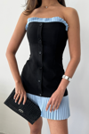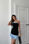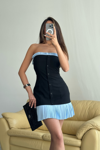 STRAPLEZ POLVİSKON ELBİSE MAVİ FIRFIR DETAYLI - Siyah