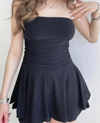 Straplez Sandy Kumaş Şortlu Prenses Etek Mini Klos Elbise- Siyah