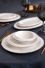 Karaca Horizon 6 Kişilik 27 Parça Gold Yemek Takımı Set İçeriği: 6 Adet Servis Tabağı (24 cm) ; 6 Adet Çukur Tabak (20 cm) ; 6 Adet Pasta Tabağı (19 cm) ; 6 Adet Kase (14 cm) ; 1 Adet Salata Kasesi (20 cm) ; 1 Adet Küçük Kayık Tabak (25 cm) ; 1 Adet Büyük Kayık Tabak (30 cm) ; Malzeme: Porselen Bulaşık makinesinde (30 derecede) yıkanabilir.