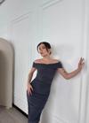 Mzp Kartan Striptiz Omuzlu Uzun Elbise- Füme