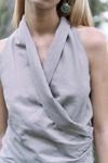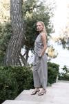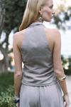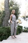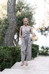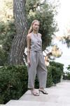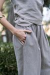 Büzgü detaylı kruvaze, gizli fermuarlı, keten karışımlı crop.Beli lastikli, yan cepli, havuç paça, bilek boy, keten karışımlı pantolon