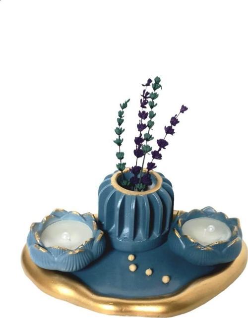Sts Flower Dekoratif Altın Yaldızlı Tgül Tasarım Dekoratif Mumluk, Biblo Dörtlü Obje Şamdan Set (Mumlar Dahil)