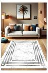 Gri Dijital Baskı Halı Kaymaz Tabanlı Yıkanabilir Halı Yolluk Salon Halısı 446