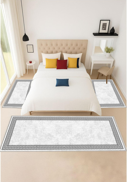 Sty Home Gri Dijital Baskılı 3 'Lü Yatak Odası Halısı Yolluk Takımı 80X150 2 Adet 80X300 1 Adet 28