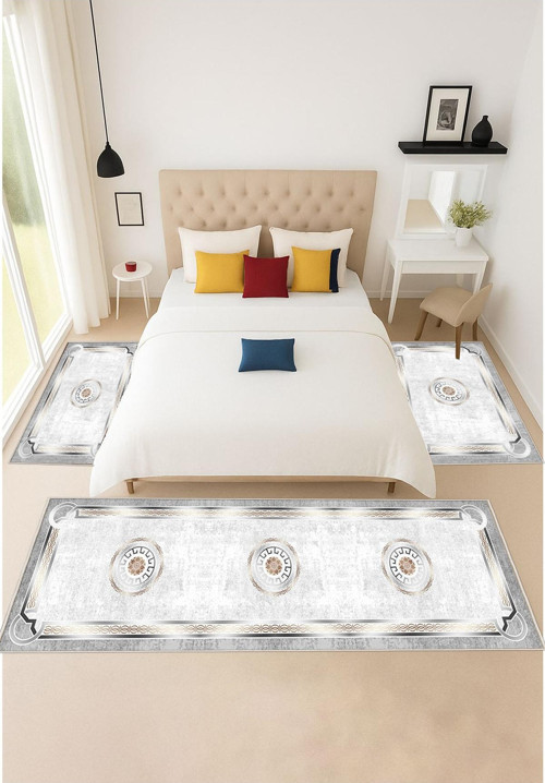 Sty Home Gri Dijital Baskılı 3 'Lü Yatak Odası Halısı Yolluk Takımı 80X150 2 Adet 80X300 1 Adet 30