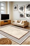 STY Home Krem Kahverengi Dijital Baskı Halı Kaymaz Tabanlı Yıkanabilir Halı Yolluk Salon Halısı 1596 1
