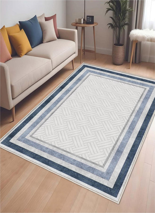 STY Home Mavi Dijital Baskı Halı Kaymaz Tabanlı Yıkanabilir Halı Yolluk Salon Halısı 656