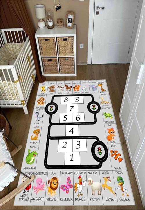 STY Home Öğretici Ingilizce Seksek Çocuk Oyun Halısı Kaymaz Makinede Yıkanabilir Eğitici Bebek Ve Çocuk Odası
