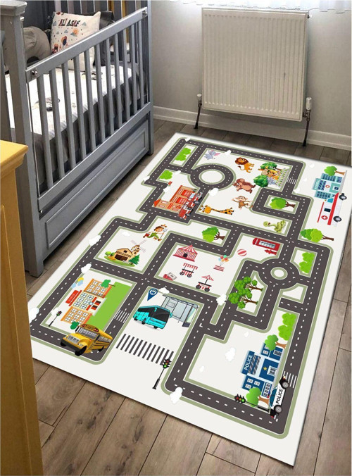 STY Home Trafik Çocuk Oyun Halısı Kaymaz Makinede Yıkanabilir Eğitici Bebek Ve Çocuk Odası Halısı Oyun Matı 1