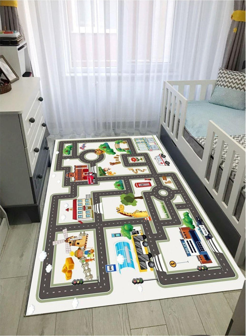 STY Home Trafik Yollu Çoçuk Kaymaz Taban Makinede Yıkanabilir Halı Eğitici Bebek Oyun Matı Oyun Halısı