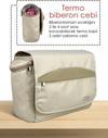 Yani çantayı alır almaz kullanıma hazırsınız! Yan taraflarda yer alan termos özellikli gözler, biberon veya sıvı içeceklerin sıcaklığını 2 ila 4 saat arası koruyarak bebeğinizin beslenme düzenini dışarıda da bozmadan devam ettirmenizi sağlar..