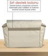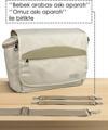 Hem bebek arabası çantası olarak kullanılabilen hem de omuz askısıyla taşınabilen bu şık model, yanında hem omuz askı kayışı hem de bebek arabası askı kayışları ile birlikte geliyor..
