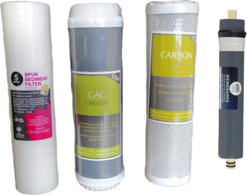 Su Arıtma Filtresi 4 Lü Set 10" inch 3 Ön Filtre Kömür Granül Aktif Karbon Filtre Aqualine Platinum 1812 Membran 80 GPD Esli