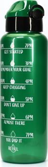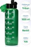 Telvesse Su Matarası Tritan Geniş Ağız Su Şişesi Motivasyon Spor Matarası Suluğu BPAsız 1000 mL Yeşil T0103