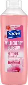Kiraz Çiçeği Özü ve E Vitamini ile formüle edilmiş Suave Essentials Yabani Kiraz Çiçeği Şampuanı, kiraz çiçeği akoru, şakayık ve tatlı siyah frenk üzümü kokularıyla saçlarınızı temizler ve yumuşatır.