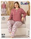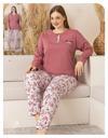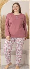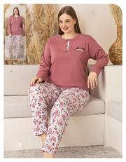 Sude Kadın Büyük Beden Düğme Yaka Penye Uzun Kol İnce Pijama Takımı P135 - 1 Adet