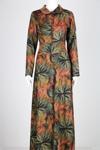 Süet Dijital Baskı Önü Düğmeli Elbise