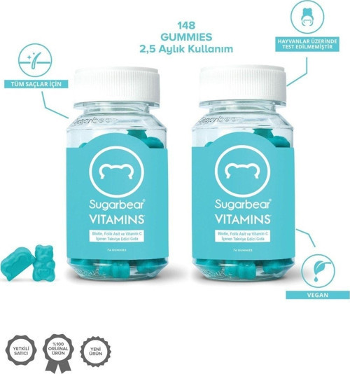 Sugar Bear Vitamin 2,5 Aylık Kullanım Seti Sugar Bear Vitamin 75 Kapsül Sabah Akşam Birer Kapsül Alınması Gerekir Saçları güçlü olması ve daha hızlı uzaması için destekler