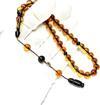 İzmur Tesbih Şükrü Baba Usta İmzalı Sistemli Küre Model 9-8,5mm Açık Sarı Renk İp Yolları Siyah Sıkma Ateş Kehribar Tesbih