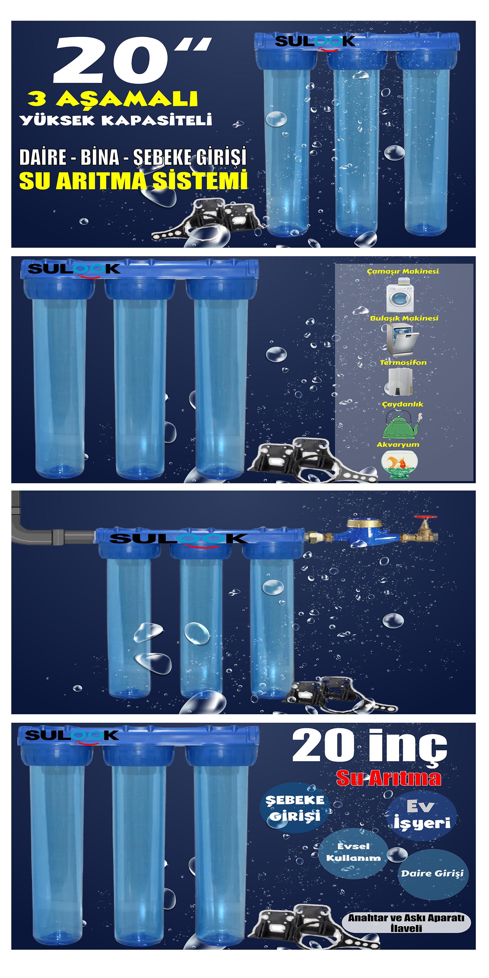 20 İnç Bina-Daire-Şebeke Girişi Su Arıtma Filtre Kabı