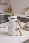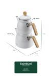 bambu kulplu çaydanlık, emaye çaydanlık seti, beyaz çaydanlık takımı, sultan çaydanlık, modern mutfak çaydanlığı, indüksiyon uyumlu çaydanlık, 2’li çaydanlık seti