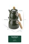 bambu kulplu çaydanlık, emaye çaydanlık seti, koyu yeşil çaydanlık takımı, sultan çaydanlık, modern mutfak çaydanlığı, indüksiyon uyumlu çaydanlık, 2’li çaydanlık seti