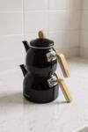 bambu kulplu çaydanlık, siyah çaydanlık seti, emaye çaydanlık takımı, sultan çaydanlık, modern mutfak çaydanlığı, indüksiyon uyumlu çaydanlık, 2’li çaydanlık seti