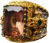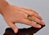 Bu yüzük, karmaşık detaylar ve ek yeşil ve mavi taşlar içermekte olup, her kıyafete zarafet ve sofistikelik katmaktadır. Detaylı işçilik, ince işlenmiş takıları takdir edenler için mükemmel bir parça olmasını sağlar.
