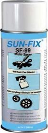 ? Çok amaçlı SUN-FIX SF 99 Multi Spray, gerek endüstride, gerekse atölyelerde pas sökücü sprey, problem giderici olarak kullanılır. ? Özel formülü sayesinde
