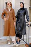 Ürün Özelliği : Yeni sezon kapüşonlu, boydan fermuarlı suni Deri Trençkot modelidir. Boydan fermuarlı, iki ceplidir. Sabit kapüşonludur. Kolu lastikli, astarsızdır. Ürün renginde konsept çekimlerinden dolayı ton farklılığı olabilir.