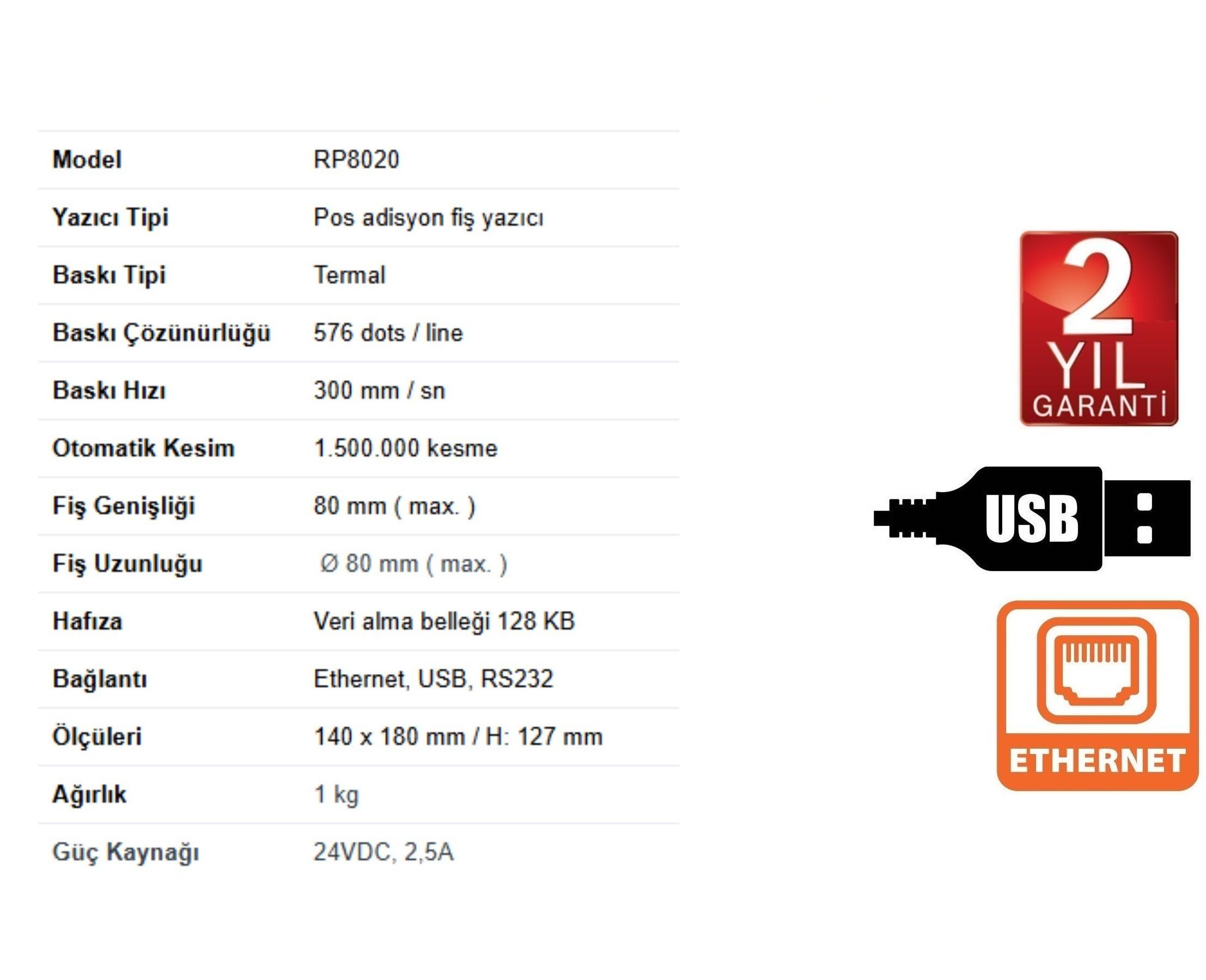 Sunlux RP8020 Termal POS Fiş Yazıcının özellikleri ve açıklamaları aşağıda verilmiştir. Farklı model seçenekleri ve daha fazla bilgiyi müşteri hizmetlerimizden alabilirsiniz.