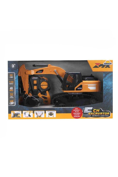 Sunman Oyuncak İş Makinesi 1/24 Uzaktan Kumandalı Ekskavatör F/F Işıklı 5Ch 3.7V.Usb 40Mhz. 8680863050804