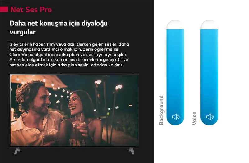 Hızlı görüntülerdeki hareketler üzerindeki bulanıklık ve bozulmalar ek işlemci gücü sayesinde düzeltiliyor. HDR10, HLG 4K60, TruMotion (MEMC ), 4K upscaler görüntü teknolojileri ile görüntü çok daha net çok daha canlı.