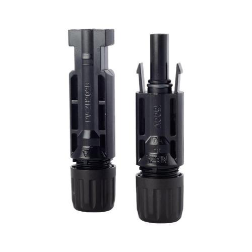 Fotovoltaik solar panellerin sahada montajında kullanılan 1500V MC4 uyumlu PV konnektör erkek dişi çift halinde gelir. PV panel dizileri ve invertör montajında güvenilir bağlantı elemanıdır.