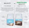 Analitik bileşenler: Ham protein – %33, ham lif – %2, ham yağ – %15,5, ham kül – %7,2, kalsiyum – %1,2, fosfor – %0,9, potasyum – %0,6, sodyum – %0,4, Omega-3 yağ asitleri – %0,68, Omega-6 yağ asitleri – %3,45.