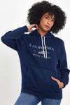 Superlife Süperlife Kadın Kapşonlu Rahat Kalıp İçi Polarlı 3 iplik Kanguru Cepli Amerikan Baskılı Swetashırt spr24swk01