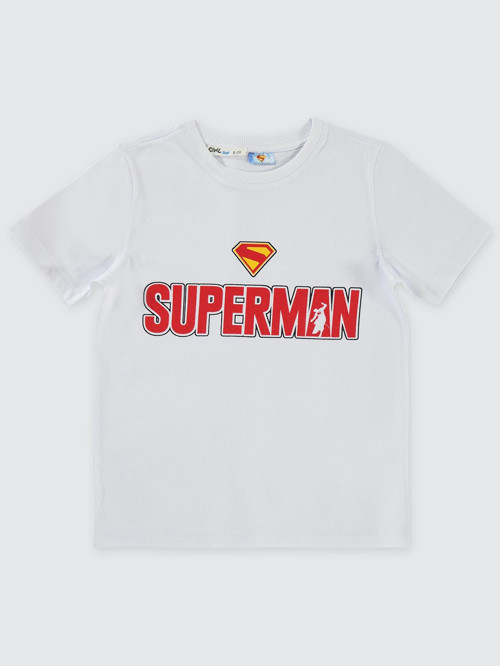 Süperman Baskılı 6-9 Yaş Tişört - Beyaz 9-10 Yaş