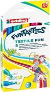 Supertrend 17 Funtastics Textile Fun kumaş boyama kalemi; pamuklu, ipek, keten vb. hemen hemen her türlü kumaş üzerine boyama ve yazma amacıyla kullanılan su bazlı pigment mürekkepli kalıcı kalemlerdir. Kuruduktan sonra buharsız ütü ile ütülenerek sabitlenir ve 60 dereceye kadar çamaşır makinesinde yıkanabilir.