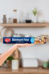 30cm x 15m alüminyum folyo yiyeceklerin sıcaklıklarının ve tazeliklerinin korur, buzdolabı ve fırında kullanım için uygundur. Kalınlık : 10 micron Kutu Ağırlık : 26g Masura Ağırlık : 38g Folyo Ağırlık : 123g Folyo Metraj : 15m