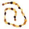 Kehribar diş kolyesi bebeklerde ortalama 4.aydan itibaren kullanılmaya başlar. Ağız suyu akıntısı, ağrı,iştahsızlık, ve uykusuzluk gibi diş çıkarma dönemine bağlı oluşan şikayetlerde çocukların diş dönemini daha rahat geçirmesini sağlar. Ten teması ve ten ısısı ile etki eder. Kehribar kolye bölgesel etki eder. İpek iplikten yapılmıştır, her boncuğun arası ayrı ayrı düğümlüdür. Kehribar kolyelerin arkasında gizli plastik vidalı klips vardır. Kehribarın etkisini göstermesi kişinin bünyesine ve büyüme atağına bağlı olarak 24 ila 72 saat arasında zaman almaktadır. Kehribar kullanıldıkça ve tena temas ettikçe etkisini gösterir. Bebeklerde 0-3 yaş arası ortalama uygun standart ebat 32 cm-34 cmdir. Kolyeler herkes için en gözde süsler arasındadır, sanıyoruz bu süs merakı küçük yaşta başlıyor. Küçük yaşlarda süse merak salan birbirinden süslü ve şık takı modellerini sunuyoruz. Kehribar şıklığından ödün vermeyen küçüklerin severek kullanacakları bir aksesuar olacaktır. Ürünlerimizin tamamı el emeği ile üretilmiştir ve değerli taşlar nedeniyle ürün ağırlığında ± %10 sapma olabilmektedir.